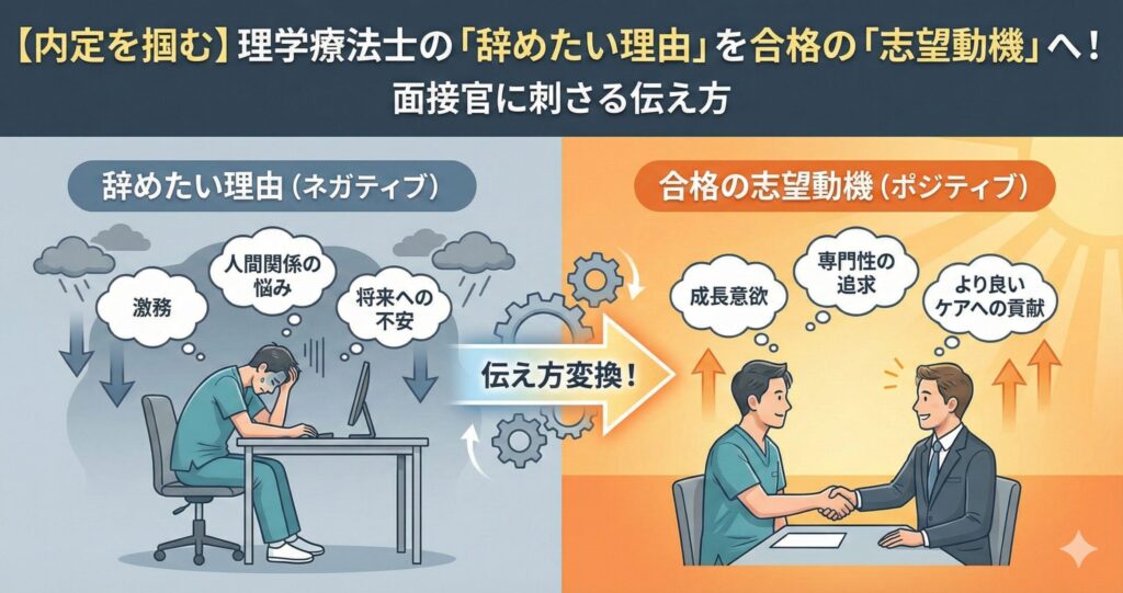 【内定を掴む】理学療法士の「辞めたい理由」を合格の「志望動機」へ!面接官に刺さる伝え方