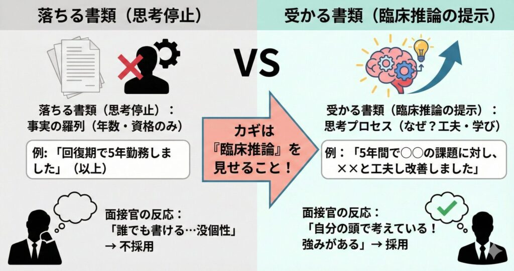 なぜ、多くのPTが「真面目に臨床をやってきたはずだ」と思いながら、書類選考であっさりと落とされてしまうのでしょうか。