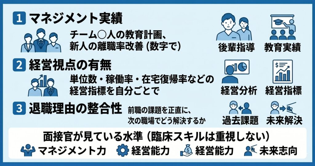 管理職候補の面接では、臨床スキルの話はほとんどしません
