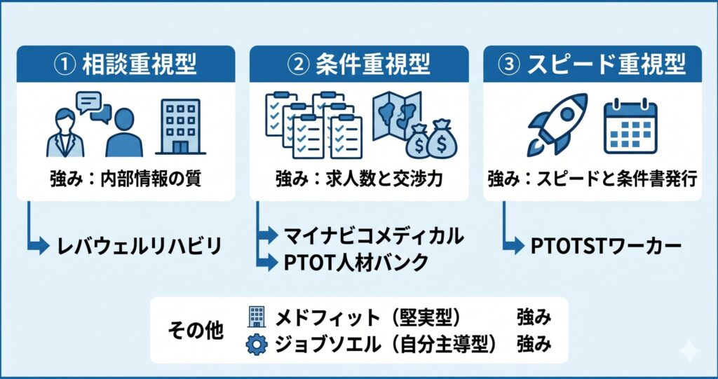 【タイプ診断】あなたに合うPT転職エージェントはどれ?