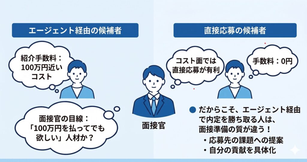 ただし、この手数料の存在が面接のハードルに影響することは、本記事で述べた通りです。