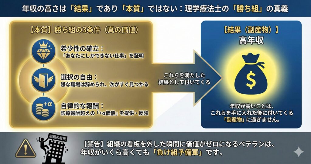 理学療法士の世界における「勝ち組」の真義は、以下の3点に集約されます。