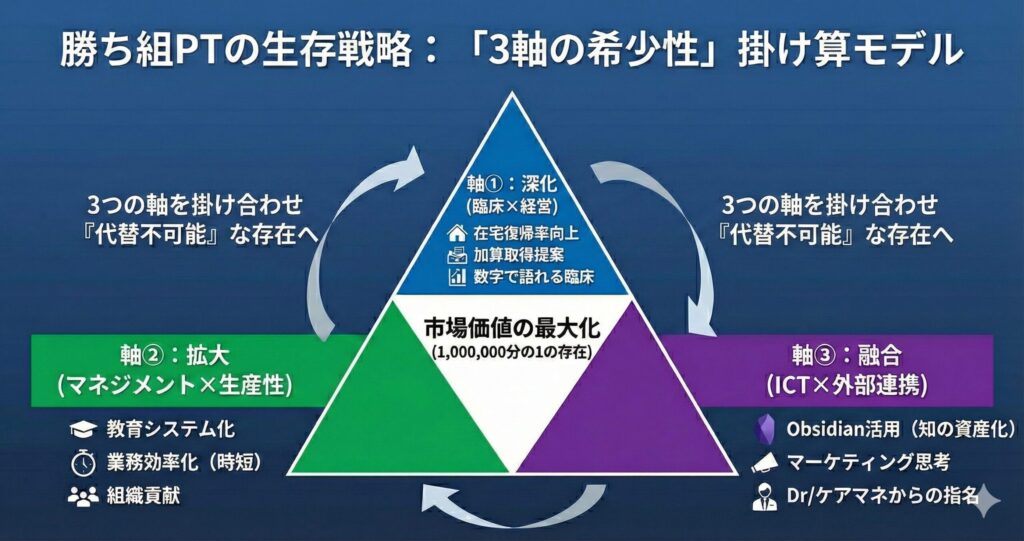 そこを「勝ち組」として生き抜くために必要なのは、「臨床スキル × 経営視点 × 知的生産性」という希少性の掛け算です。