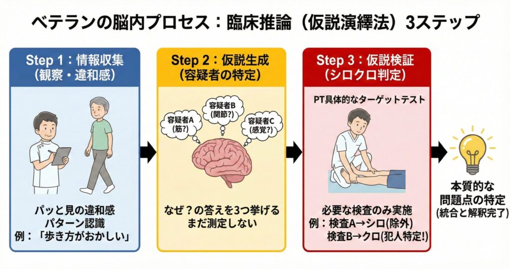 クリニカルリーズニング(仮説演繹法)の3ステップ