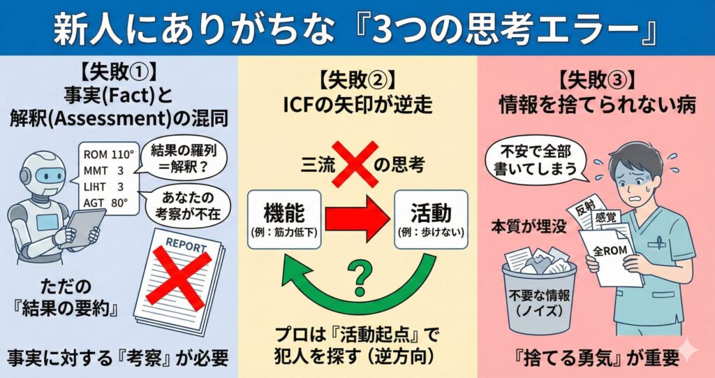 新人のレポートが「浅い」と判断される理由は、大きく分けて3つの「致命的な思考エラー」に集約されます。