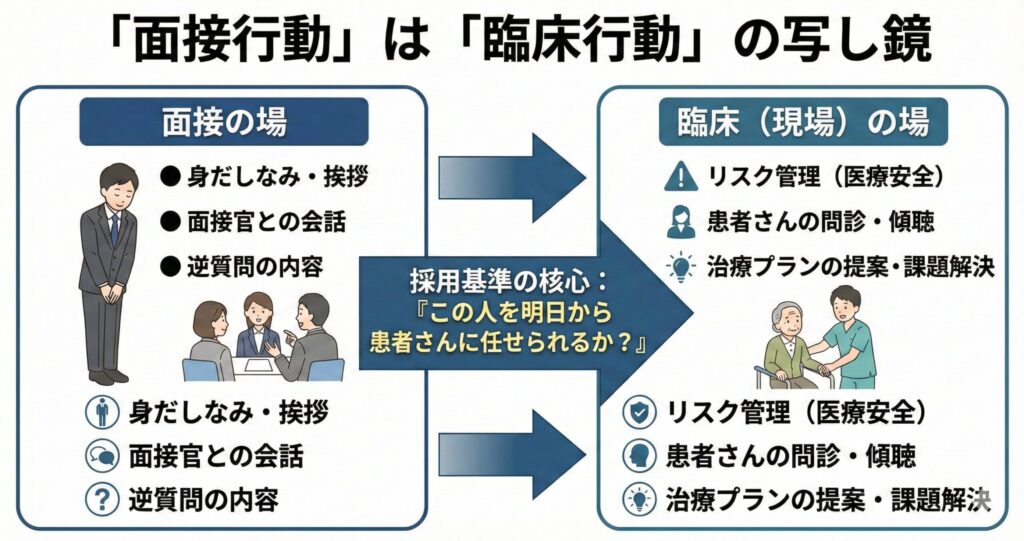 私たちが面接で見ているのは、 「この人を明日から現場に出して、患者さんを任せても大丈夫か?」