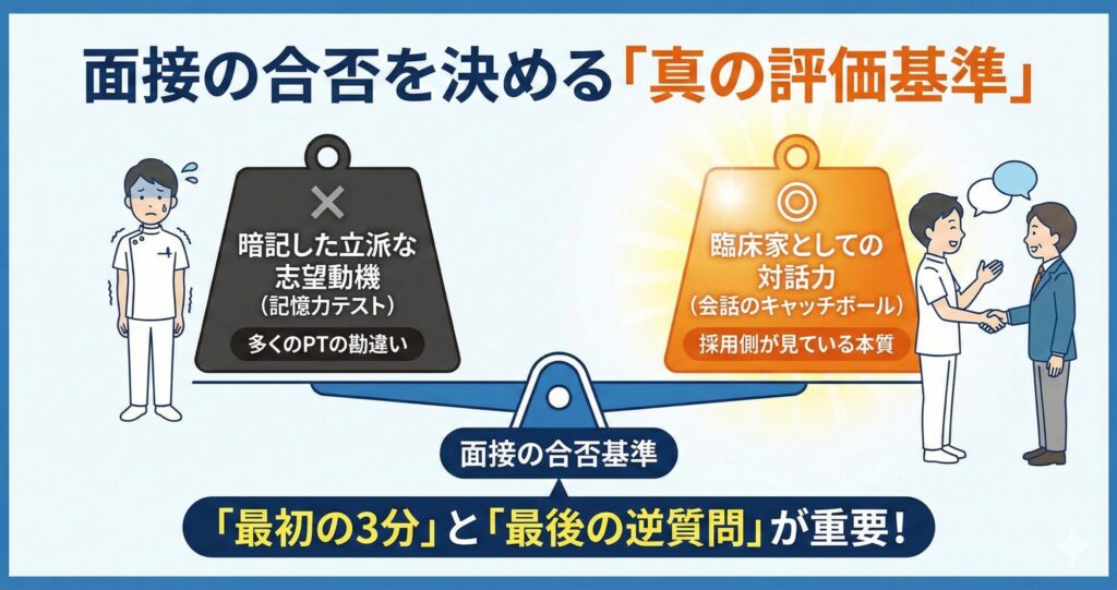 なぜなら、採用担当者が見ているのは、あなたの「記憶力」ではなく、「臨床家としての対話力」だからです。
