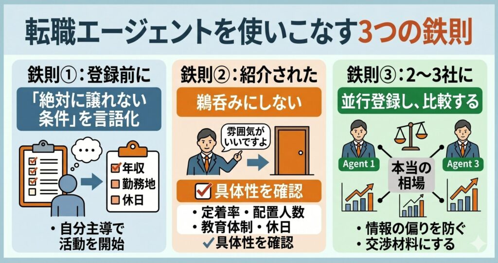 これをしないと、エージェントに主導権を握られ、「とりあえず条件の良さそうな案件」を紹介されるまま流されます。
