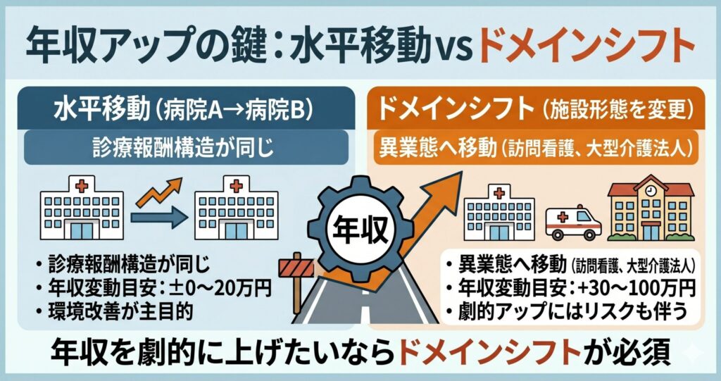 - 年収天井の構造を理解した上で、ドメインシフトの選択肢を検討する
