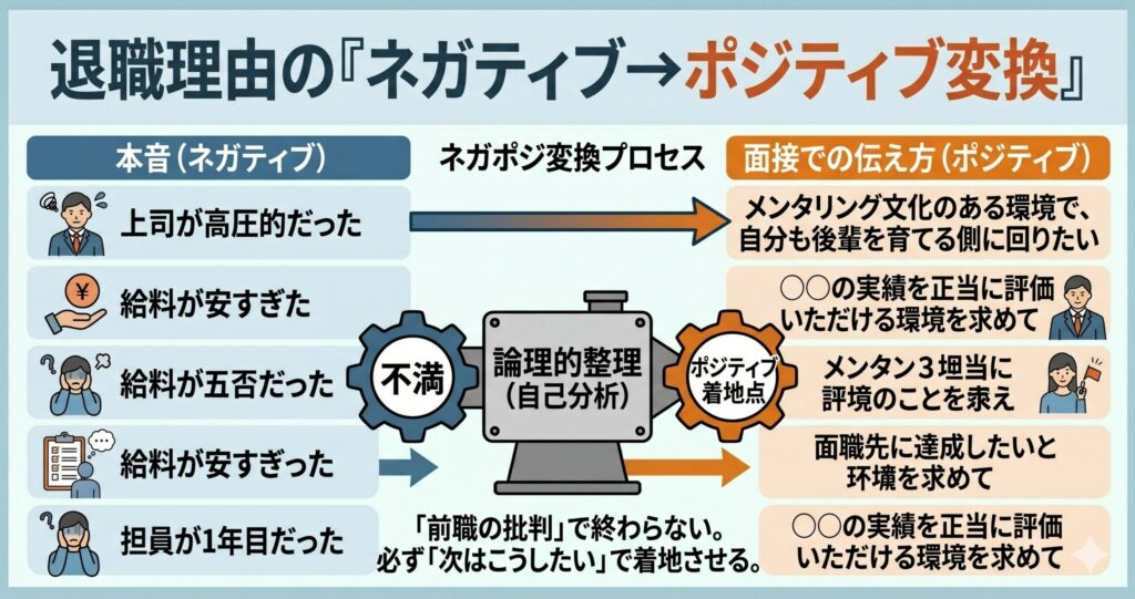 ②退職理由を「ネガティブ→ポジティブ変換」する