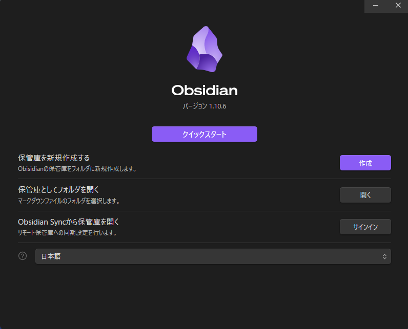 ダウンロードされたファイル(Obsidian.x.x.x.exeという名前です)をダブルクリックし、インストールを実行してください。 これだけでPCへの導入は完了です。