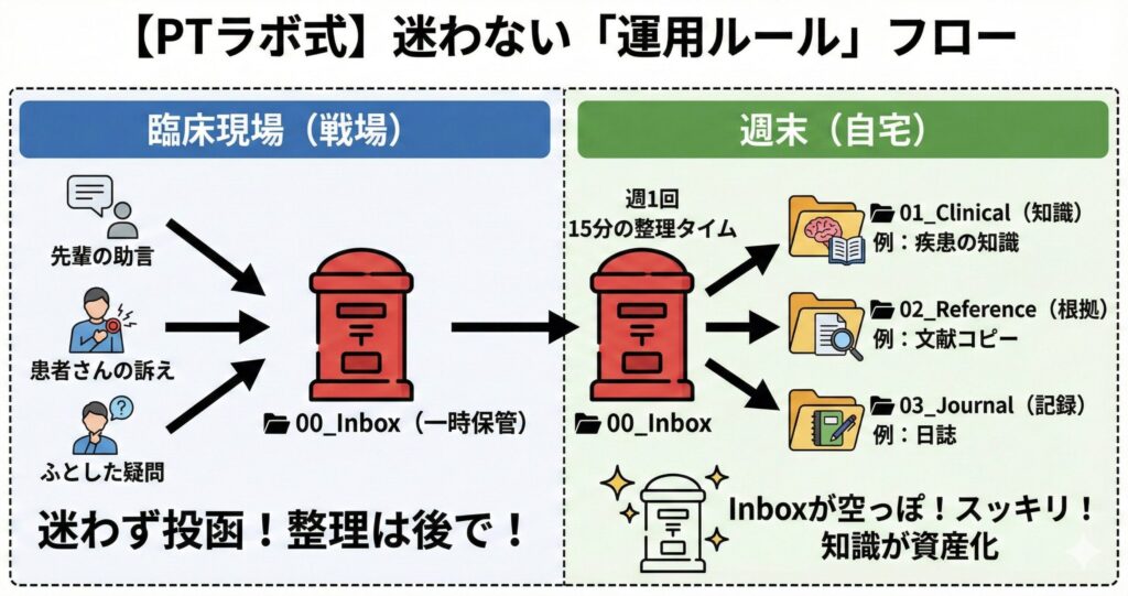 臨床で生まれた情報は、整理せず、全て「00_Inbox」に放り込むこと。