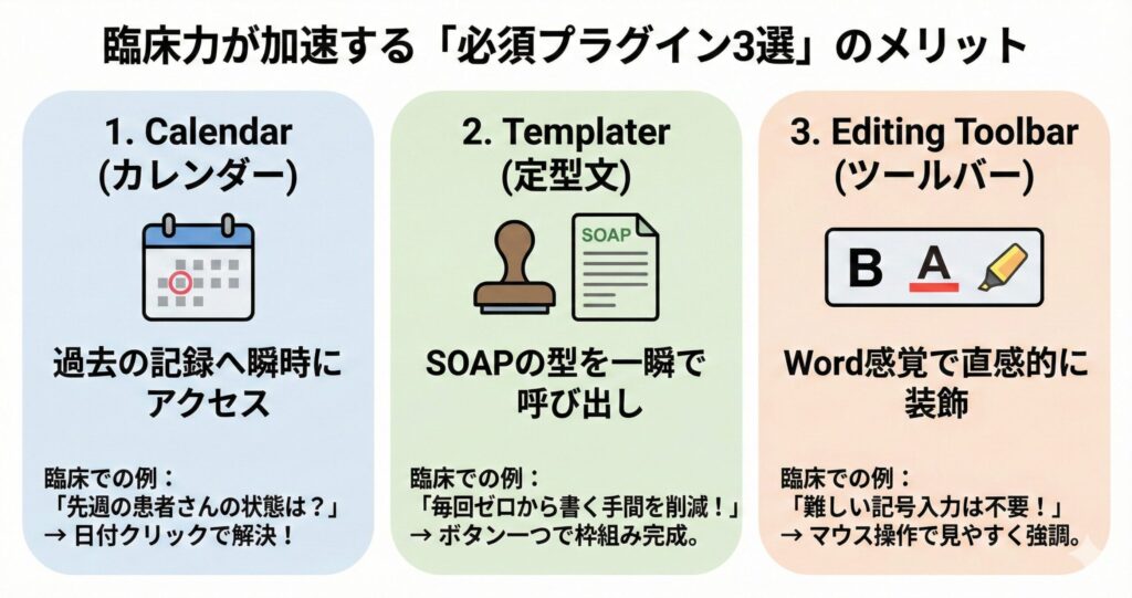 - 迷わない:臨床に必要な「4つのフォルダ」と「3つのプラグイン」のみ厳選しました