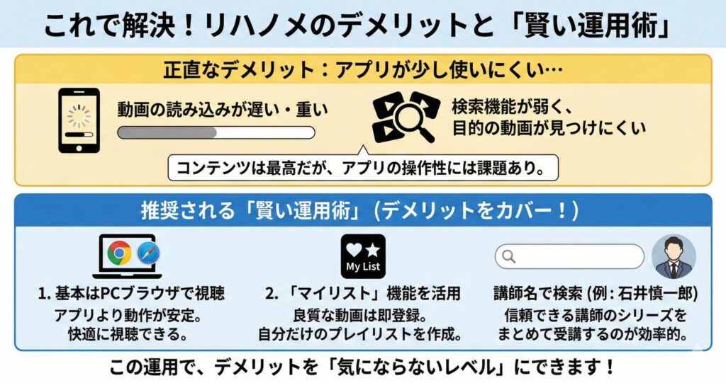 コンテンツの質が極めて高いため、アプリの不便さは運用でカバーするのが「賢い使い方」です。
