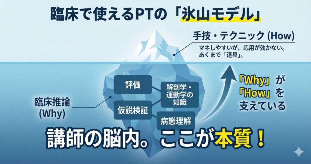 その代わり、管理職PTの視点から、「なぜ、多くの勉強会は臨床で使えないのか」という残酷な現実と、あなたのお金と時間を守り、確実に臨床を変えるための「失敗しない選び方の基準」をお伝えします。