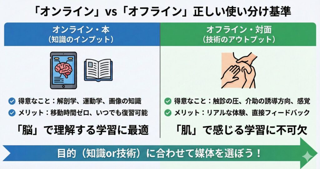 「安いからオンライン」「有名だからオフライン」で選ぶのは間違いです。